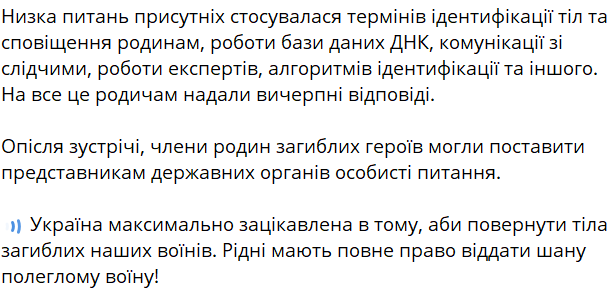 Члены семей военнослужащих жалуются на длительную идентификацию неопознанных тел защитников, поэтому для общения с ними были приглашены представители государственных органов.